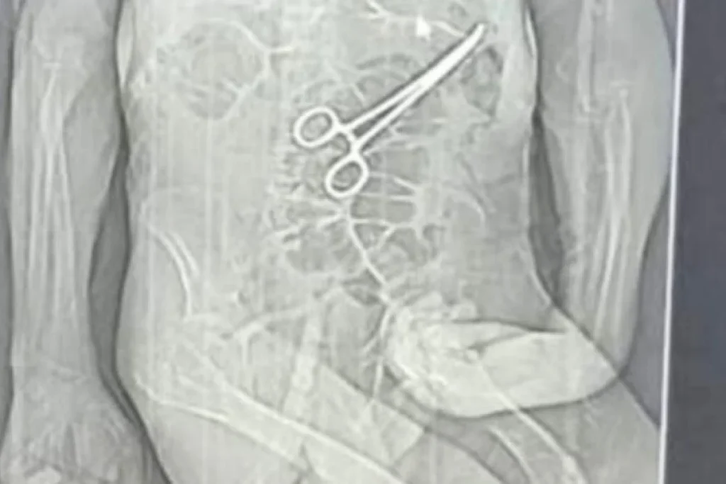 Foi nesse período que uma tomografia identificou, de acordo com a Secretaria de Saúde, “um corpo estranho na cavidade abdominal” do paciente. Diante do achado, uma nova cirurgia foi realizada em 11 de dezembro com o objetivo de remover o objeto.