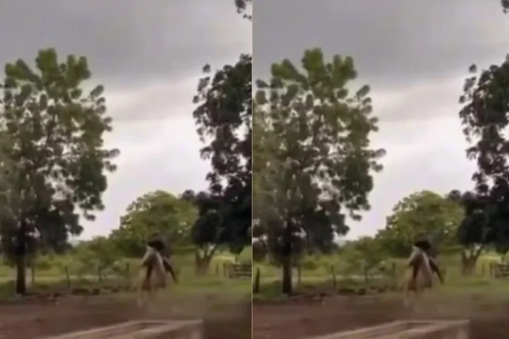 Segundos após a ação do animal, um **raio de grande intensidade** atinge o local exato onde o homem e seu cavalo estariam se não fosse pela reação rápida. Conforme informações divulgadas, o caso aconteceu na zona rural de Angical.