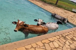 Brasil 07h03 - 04/01/2026 Vacas em Apuros: Quatro Bovinos Resgatados de Piscina de Clube em Alfenas, Sul de MG