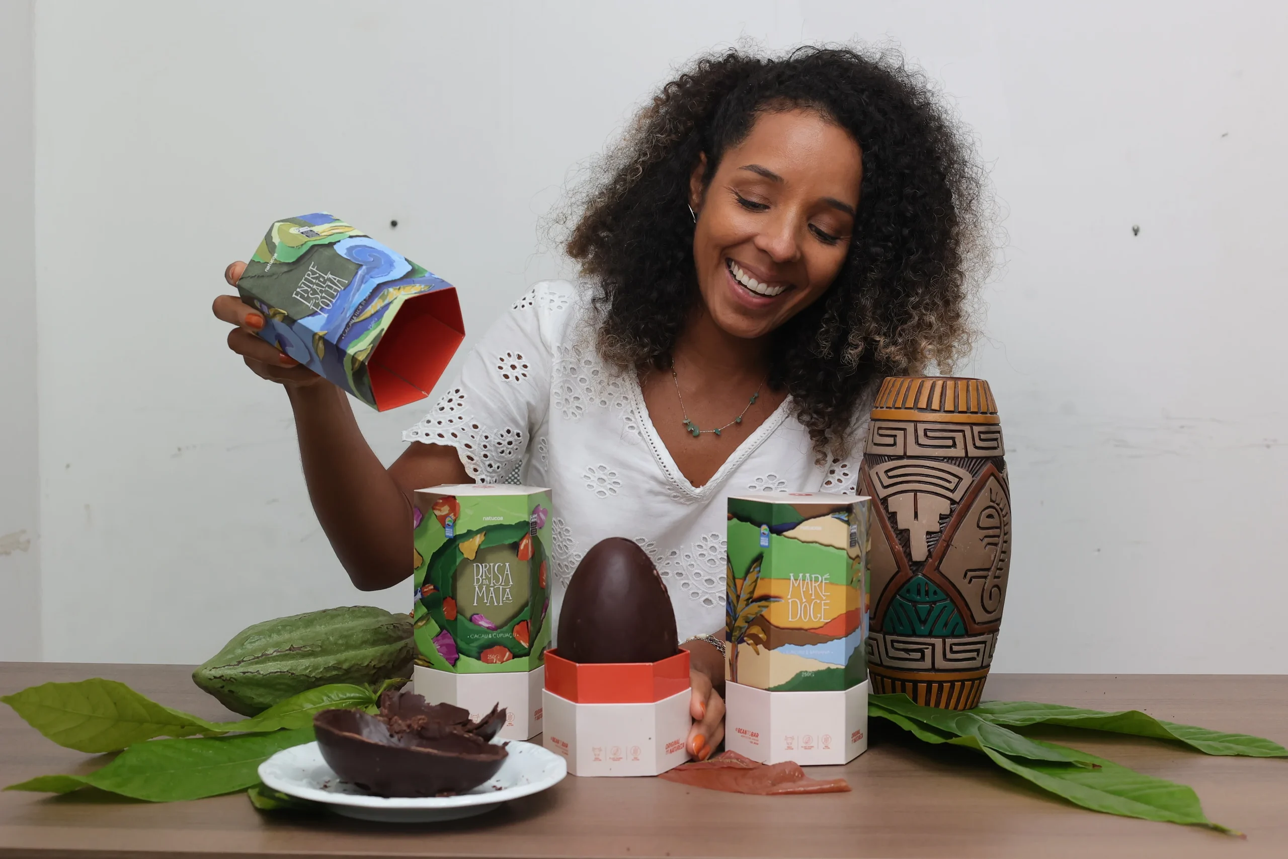 “A Páscoa é um período muito importante para nós, porque amplia as vendas e fortalece toda a cadeia produtiva. Cada ovo vendido representa renda para as famílias agricultoras que produzem o cacau e também mostra que é possível transformar nossa matéria-prima em um produto final valorizado pelo consumidor”, afirma Osana Crisóstomo, presidente da Coopfesba. Sua fala enfatiza o impacto social e econômico da produção.