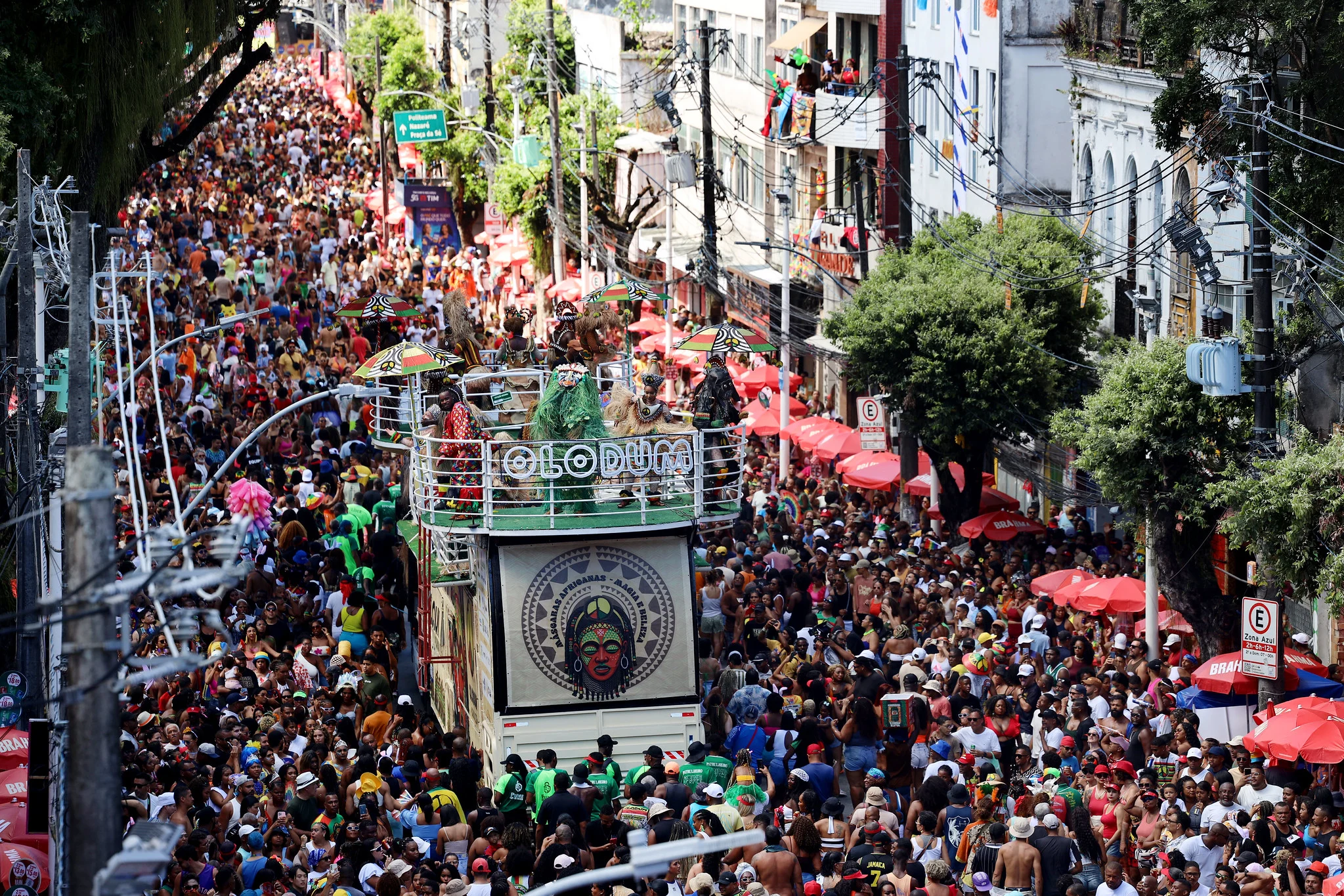 Fundado em 1979 no histórico Pelourinho, em Salvador, o Olodum se consolidou como um dos principais símbolos culturais da Bahia e do Brasil. O grupo transcende a música, unindo identidade, ativismo social e a celebração da cultura afro-brasileira. No Carnaval, sua pipoca se tornou um dos momentos mais emblemáticos do circuito, reafirmando a capacidade do bloco de mobilizar multidões ao som dos tambores que ecoam a história e a resistência do povo negro.