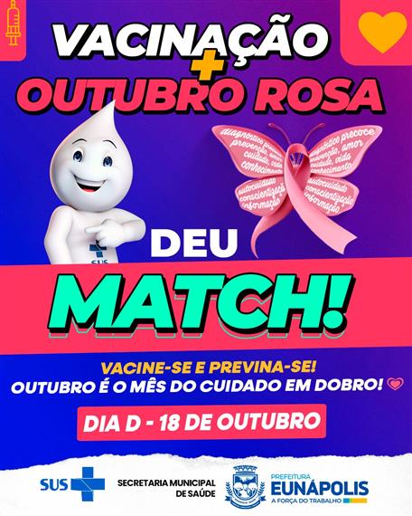 A Prefeitura de Eunápolis, por meio da Secretaria de Saúde, está promovendo durante todo o mês de outubro uma ação integrada entre a Campanha de Multivacinação e o Outubro Rosa. A iniciativa tem como objetivo reforçar a importância do autocuidado, com atualização da caderneta de vacinação de crianças, adolescentes, adultos e idosos, além do incentivo ao rastreamento precoce do câncer de mama.